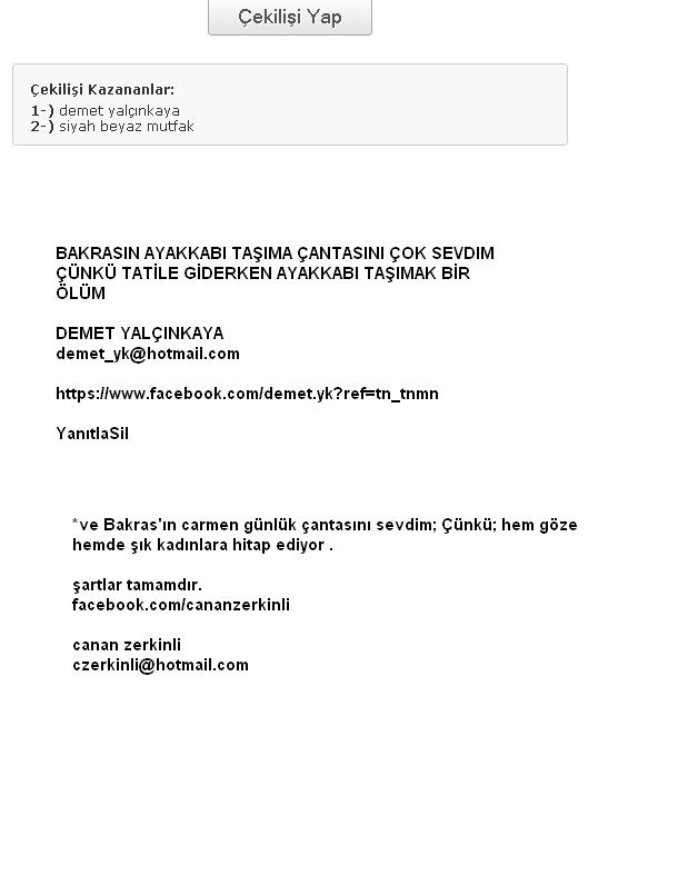 Kazananlar ve  yorumları aşağıda adreslerini smmgulsen@gmail.com adresine bekliyorum.
